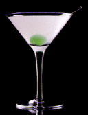 シェークしてカクテルグラスに注ぎ、ミントチェリーをピンに刺して飾る