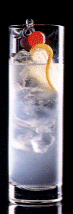 ソーダ以外の材料をシェークしてコリンズグラスに注ぎ、氷を加えて、冷やしたソーダ水を満たして軽くステアする。スライスレモン、マラスキーノチェリーをピンに刺して飾る。