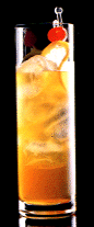 ソーダ以外の材料をシェークしてコリンズグラスに注ぎ、氷を加えて、冷やしたソーダ水を満たして軽くステアする。スライスレモンマラスキーノチェリーをピンに刺して飾る。