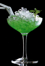 ソーサー型シャンパングラスにクラッシュアイスをいっぱいに詰め、クレームドミントを注ぐ。ミントの葉を飾り、短いストローを添える。
