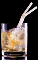 ウイスキーを氷とともにシェークしてオールドファッションドグラスに氷も一緒に入れ、レモンピールを絞りかける。ストローを添える。